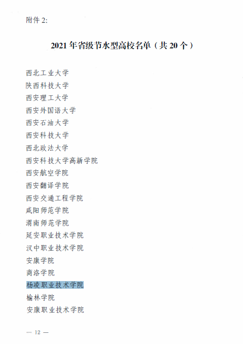 近日,陕西省水利厅公布了2021年省级节水型示范单元(节水型载体)评选结果,经自评申报、示范区核查评估、省水利厅复核、网上公示等程序,我校被评为省级节水型高校。
