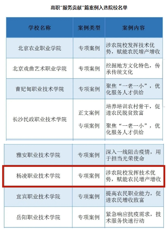近日,《2021年中国职业教育质量年度报告》典型案例陆续发布,我校报送的“涉农院校发挥技术优势,赋能农民增产增收”专项案例和“创新专业教学组织形式,适应扩招生源的学习需求”正文案例成功入选。