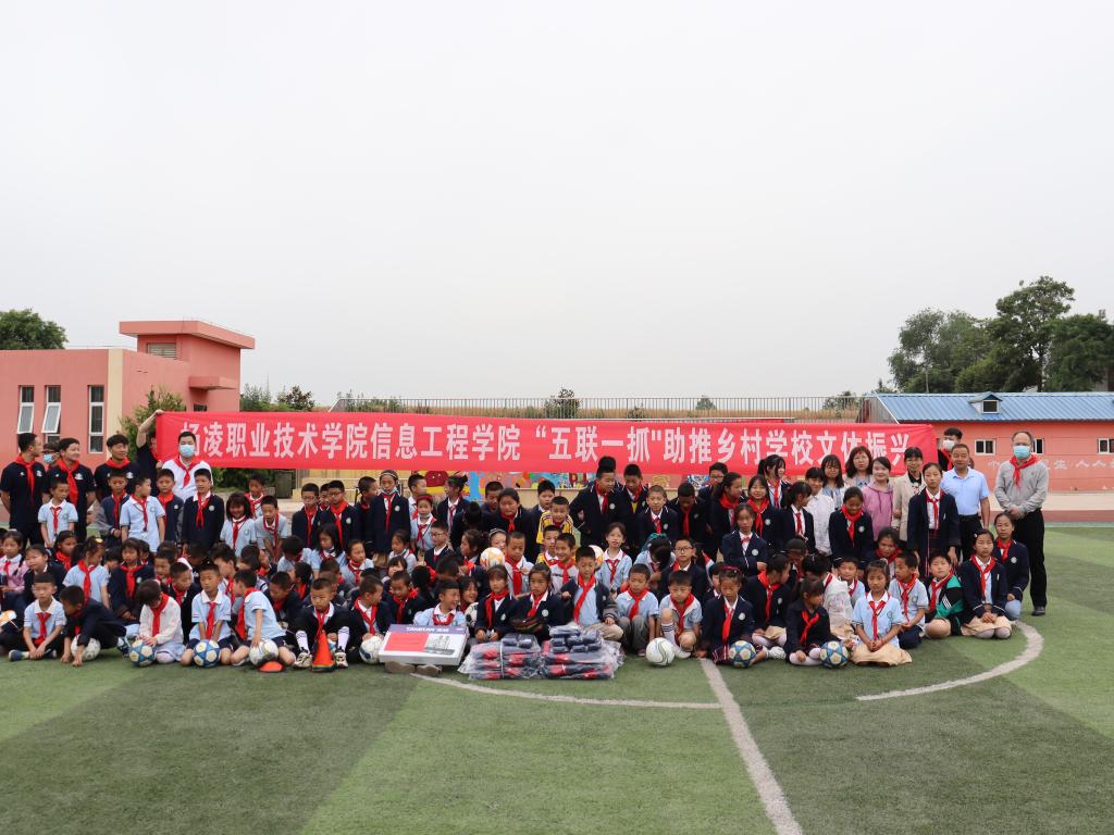 信息工程学院在周李村开展助推乡村学校文体振兴活动。 5月31日上午,李村小学开展“五联一抓”助推乡村学校文体振兴暨六一儿童节慰问活动。向小学生代表赠送了书包、足球、麦克风等文体活动用品,团员志愿者为小学生们表演了节目,4名绿茵竞技队的足球教练为学校的小队员们上了第一次足球培训课。针对该校缺少音乐教师和足球教师的现状,联合杨凌绿茵俱乐部为该校义务开展为期一年的足球培训和音乐辅导,为推进周李乡村振兴贡献力量。