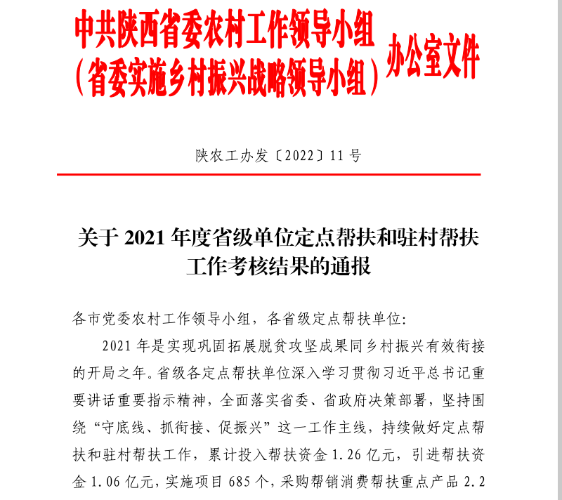 杨凌职院被评为省级定点帮扶工作“好”等次单位