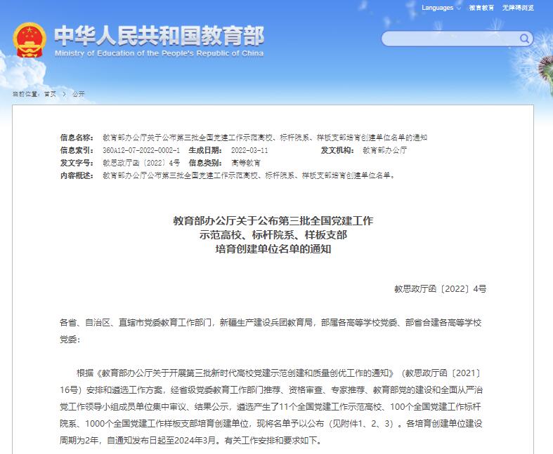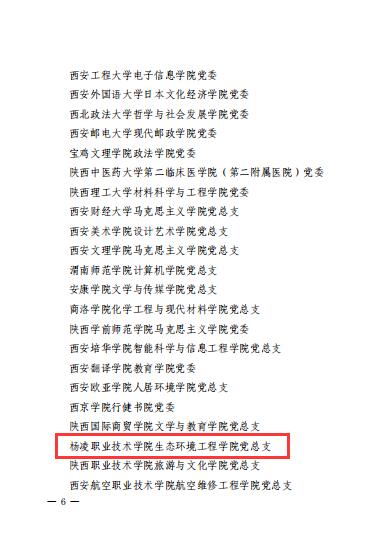 近期,教育部思想政治工作司、省委教育工委先后公布第三批新时代高校党建示范创建和质量创优工作名单。我校动物工程学院党总支动物医学党支部入选全国党建工作样板支部创建单位。学校党委、生态环境工程学院党总支、生物工程学院党总支植物保护与农业生物技术党支部分别入选陕西省党建示范高校党委、党建标杆院系、党建样板支部创建单位。