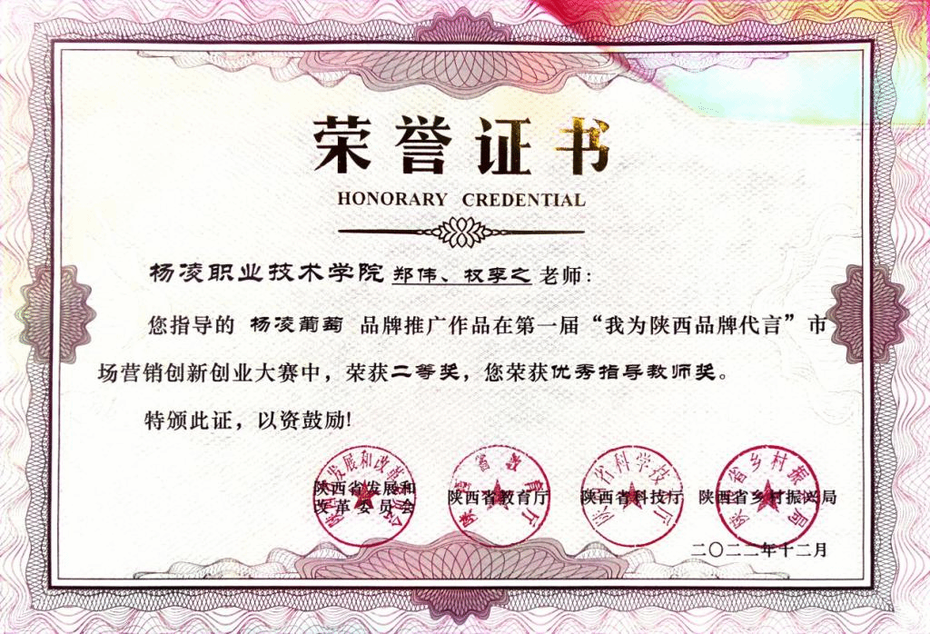 本次比赛主题为“推广农业品牌,助力乡村振兴”,由省发展和改革委员会主办,品牌和高质量发展研究中心、西安理工大学联合承办,省委宣传部、省教育厅、省科技厅、省农业农村厅、省乡村振兴局等多部门指导。共有来自全省30余所高校的300支队伍、3000名学生参加。我校“秦拾味”团队以杨凌葡萄为选题,从5月至10月历经2个阶段赛事活动,最终取得二等奖第1名的好成绩,也是陕西高职院校中最高获奖学校。