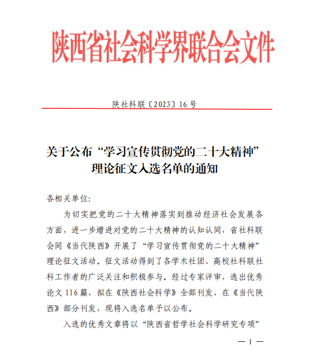此次征文活动选出优秀论文116篇,拟在《陕西社会科学》全部刊发,在《当代陕西》部分刊发。全省高职院校仅有2篇优秀论文入选并获得专项立(结)项。
