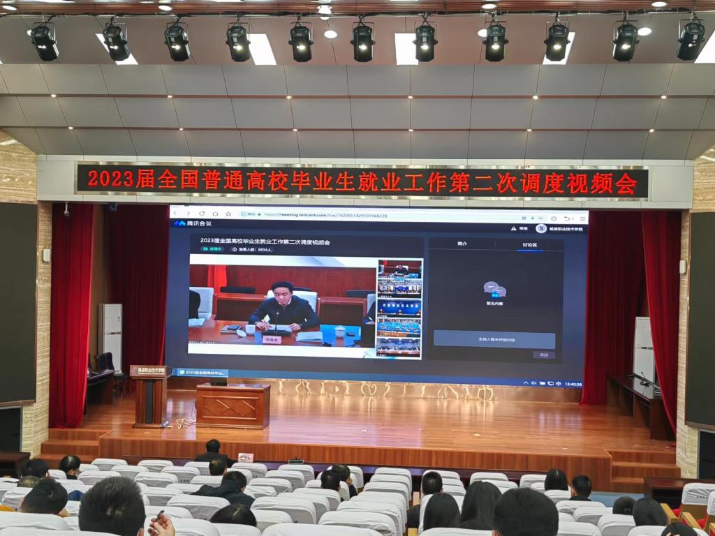 会前,与会人员参加了教育部召开的2023届全国普通高校毕业生就业工作第二次调度视频会。