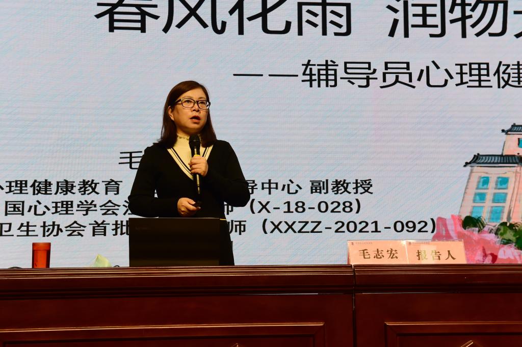 仪式上,安排了第十四届“阳光护航”心理育人宣传季工作,水利工程学院、建筑工程学院辅导员代表分享交流心理健康教育工作经验。陕西师范大学心理健康教育咨询指导中心主任毛志宏以《春风化雨 润物无声——辅导员心理健康教育技能培训》为题作了首场报告,详细阐述了心理状态的区分和评估、学生常见心理问题的处理、辅导员家校沟通的注意事项,提高了在座师生的心理健康鉴别、化解学生心理危机能力,提升了学生心理素质。