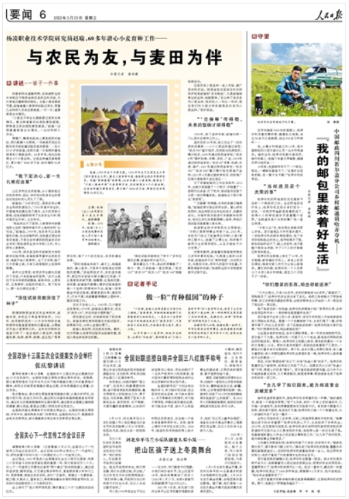 《杨凌职业技术学院研究员赵瑜,60多年潜心小麦育种工作——与农民为友,与麦田为伴》从“我下定决心,要一生扎根在这里”、“保住试验田就保住了种子”“‘交接棒’传得稳,未来的饭碗才端得稳”三部分,讲述了我校小麦育种专家赵瑜研究员扎根豆村农场,数十年如一日潜心研究小麦高产栽培技术,最终探索出“少投入高命中率”的小麦育种方法,培育了多个优良高产小麦品种的先进事迹。