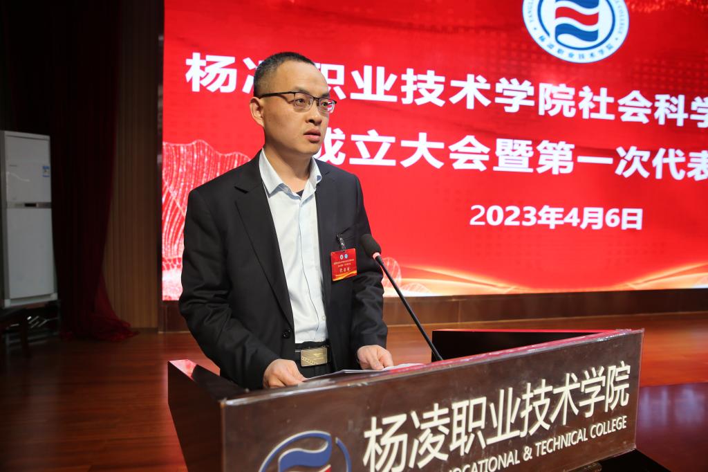 郭建树在讲话中,代表陕西省社科联对杨凌职院社科联的成立及新当选的第一届委员会委员表示热烈祝贺。他指出,杨凌职业技术学院社科联的成立,是以实际行动贯彻落实二十大精神,充分体现了学校对哲学社会科学工作的重视及对哲学社会科学工作者的关心。杨凌职业技术学院社科联的成立是杨凌职业技术学院的一件大事,也是我省社科界的一件喜事,为学校新文科建设搭建了新的平台,也壮大了我省社科联组织基础。他分析了陕西省哲学社会科学发展的现状、问题及规划,简要介绍了省社科联针对存在问题的工作思考。他充分肯定了杨凌职业技术学院近年来的发展及在哲学社会科学领域取得的成绩。他希望,学校社科联一是要举旗帜,始终坚持马克思主义指导地位,贯彻习近平新时代中国特色社会主义思想。二是要发挥学校优势,服务社会经济发展。三是要积极开展学术交流活动,促进学科发展和人才队伍建设,切实发挥社科联桥梁纽带作用,努力推进社科事业繁荣发展。他表示,省社科联将大力支持杨凌职业技术学院社科联开展工作,在课题研究、学术交流、社科服务以及人才推荐等方面给学校社科工作者提供更广阔的平台,促进学校社科联健康成长和发展壮大。