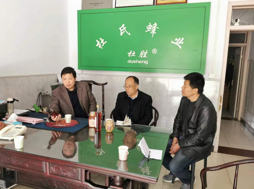 乡村产业振兴带头人“头雁”杜胜岳的陪同下,专家一行考察了韩城杜氏蜂业专业合作社的销售门店、加工厂及养蜂基地,深入了解了合作社生产运营规模、产品开发、销售模式。黎九洲中蜂的养殖技术、蜂蜜的采收、质量的控制等方面提出建议和指导。祝战斌针对合作社出现的蜂产品开发瓶颈,提出精确检测、制定企业标准,进入正规销售渠道等建议。同时,结合目前蜂产品的市场需求及企业实际情况,共同研判了下一步拟开发系列产品,体系专家将在产品的配方、工艺、包装及营销等技术方面给予大力支持。