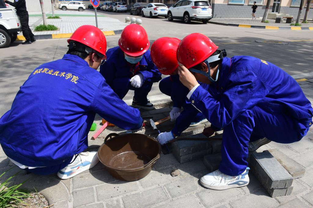 文明校园|建筑工程学院开展南校区破损人行道修缮活动