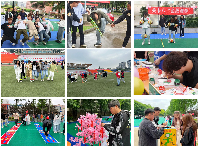 南校区活动在田径场举行,设置了团扇DIY手工制作、四人五足、搭桥过河、趾压板送鸡毛信、不倒森林、蛟龙出海、神笔马良等十二项游戏;西校区活动在羽毛球场举行,设置了解忧箱、快乐传递、三子棋接力大战、头脑风暴、蒙眼敲锣、许愿树等十项游戏;北校区活动在篮球场举行,设置了螃蟹赛跑、神魂颠倒、弯腰过杆、负重接力、负重接力、水上漂等十项游戏。三校区师生共同参与,兴致高昂,展现出了青春昂扬、欢乐自信的精神面貌。