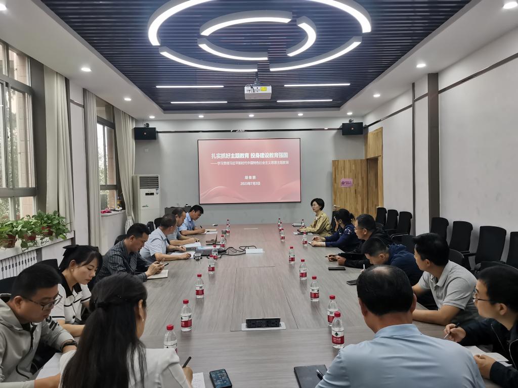 胡俊鹏围绕以深刻理解开展主题教育的重大意义为基础、以全面学习习近平新时代中国特色社会主义思想为抓手、以坚持将思想转化为指导实践的强大力量为重点、以抓好机关和干部队伍教育问题检视整改为关键、积极投身教育强国建设、学习感悟与体会等六个方面开展进行讲述。他提出,要做到学思悟结合、知行信统一,感悟思想伟力,促进事业发展,切实把学习成效转化为促进学校办学事业发展的实际行动和强劲动力。