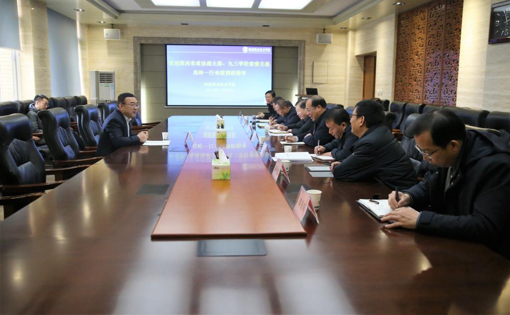 会上,仲伟周对高岭一行来校调研指导工作表示欢迎,对九三学社省委会长期以来对学校工作的关心关怀和支持帮助表示感谢。他介绍了近几年来学校教育事业发展情况以及取得的主要成绩。祝战斌介绍了学校双高、本科建设情况,胡俊鹏介绍了滨河校区建设情况。
