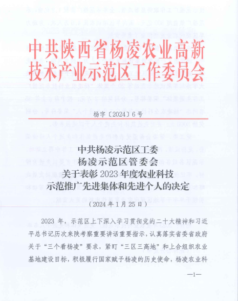 学校荣获杨凌示范区农业科技示范推广先进集体