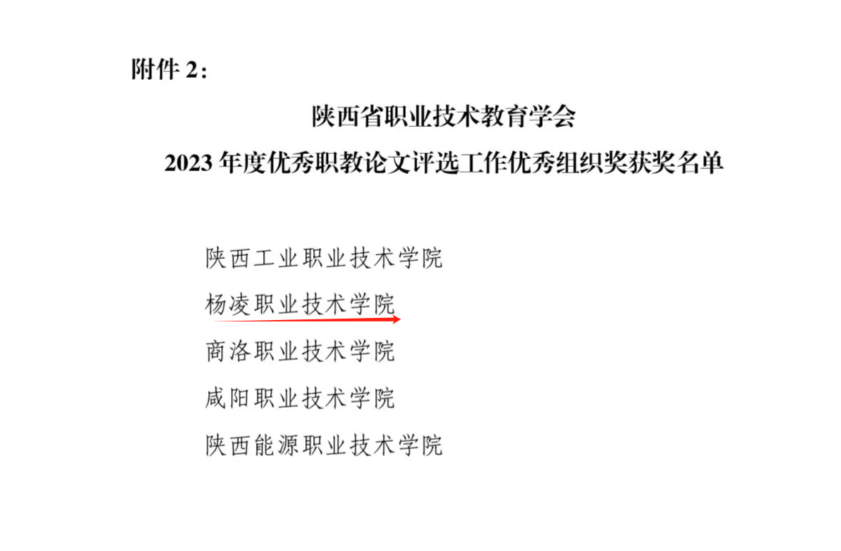 近日,陕西省职业技术教育学会公布了2023年度优秀职教论文评选结果。我校54篇论文获陕西省职业技术教育学会优秀论文奖,其中一等奖1篇、二等奖19篇、三等奖34篇,学校荣获2023年度优秀职教论文评选工作优秀组织奖。