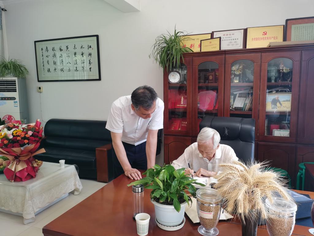 座谈中,赵瑜回顾了自己60余年的育种历程,详细介绍了2021年通过国审的“武农981”“武农988”两个小麦新品种在黄淮麦区的大规模推广工作和后续成果转化情况,以及目前正在培育的小麦新品种情况。韩明军亲切询问了赵瑜的身体和生活状况,感谢他六十年如一日扎根扶风豆村教学实验农场辛勤育种,为学校高质量发展做出的重要贡献,赞扬“赵瑜精神”是学校的宝贵财富,是激发青年教师、广大学生奋发向上的动力,叮嘱他要保重身体,继续发挥专长,为我国小麦育种事业做出更大贡献,继续发挥好示范引领作用,抒写道德模范和陕西好人新故事。他表示,学校将一如既往地支持赵瑜的育种工作,继续大力宣传其先进事迹和“照准目标矢志不渝”的种子精神,进一步将向赵瑜学习宣传活动引向深入。