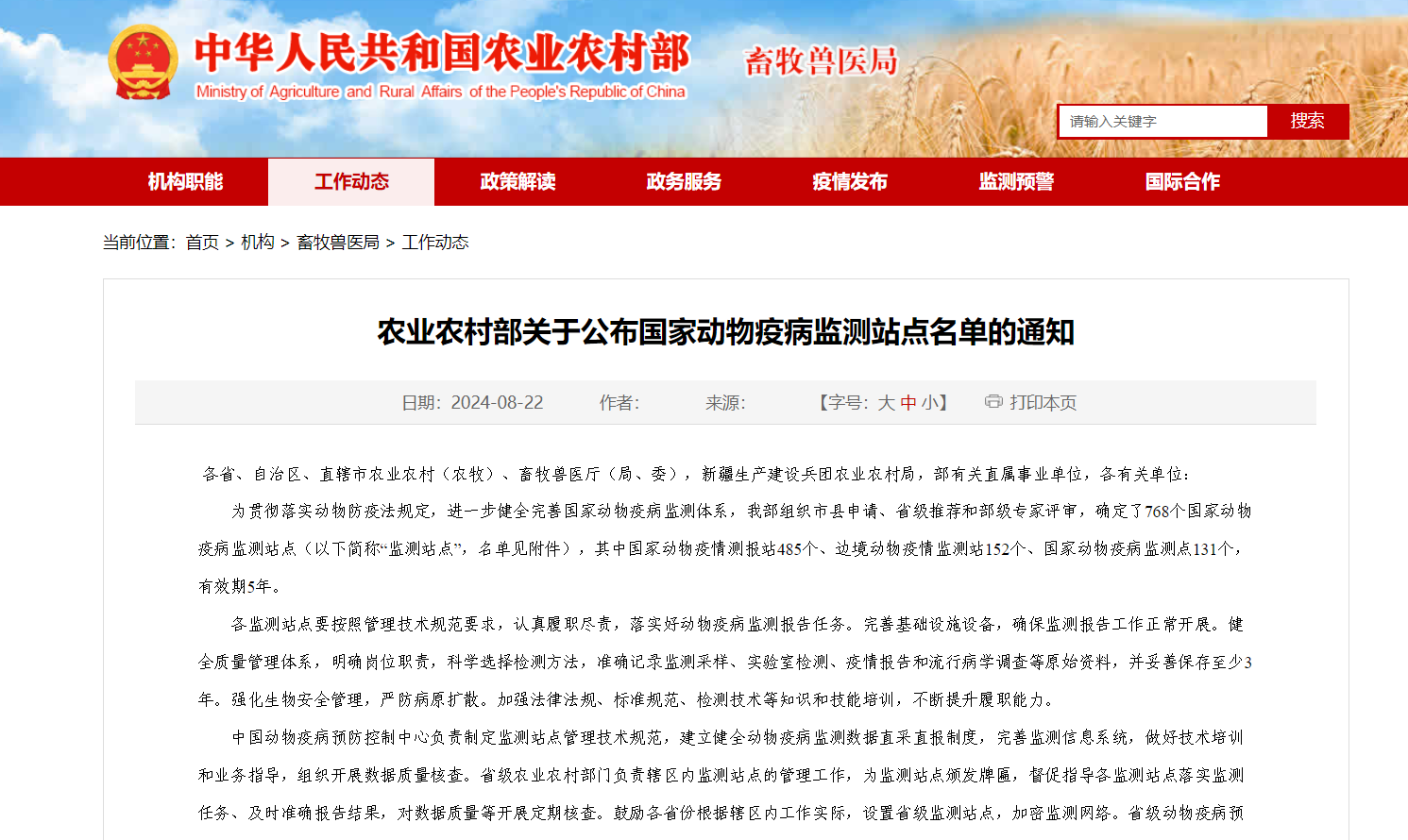 近日,农业农村部公布了国家动物疫病监测站点名单,我校动物工程学院依托省动物疫病防控工程技术研究中心,成功入选国家动物疫病监测站点。