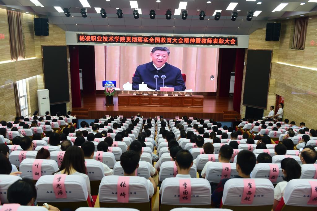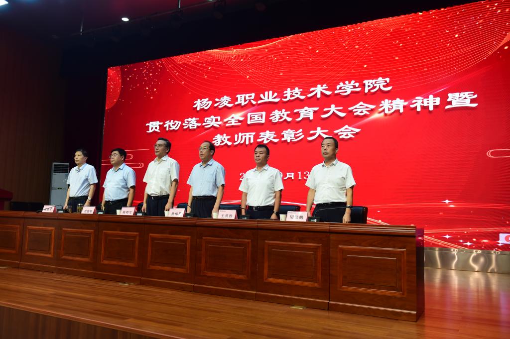 韩明军在讲话中,代表学校党委向全体教职工致以诚挚的问候,向老师们的辛勤付出和努力工作表示最崇高的敬意向受到表彰的教师们表示热烈祝贺,并介绍了一年来学校取得的一系列标志性成果和显著发展成就。他指出,习近平总书记在全国教育大会上的重要讲话,为新时代广大教师的职业追求指明了方向、提供了根本遵循。强调,作为教师,一是要守初心、担使命,做从教报国的践行者;二是要树品行、提能力,做立德树人的大先生;三是要抓教书、重育人,做学生成长成才的引路人;四是要挑重担、勇向前,做学校发展的推动者。希望广大教师认真学习贯彻落实全国教育大会精神,不忘初心、不辱使命,自觉维护学校形象和利益,在杨凌职院这个大舞台上,继往开来、不懈奋斗,奋力书写当代杨职人躬耕教坛的精彩答卷,努力开创学校事业发展的崭新篇章。