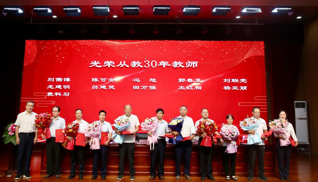 光荣从教30年教师、受表彰教师代表,各二级学院(部)党总支书记、院长(主任),机关处室负责人参加了大会。