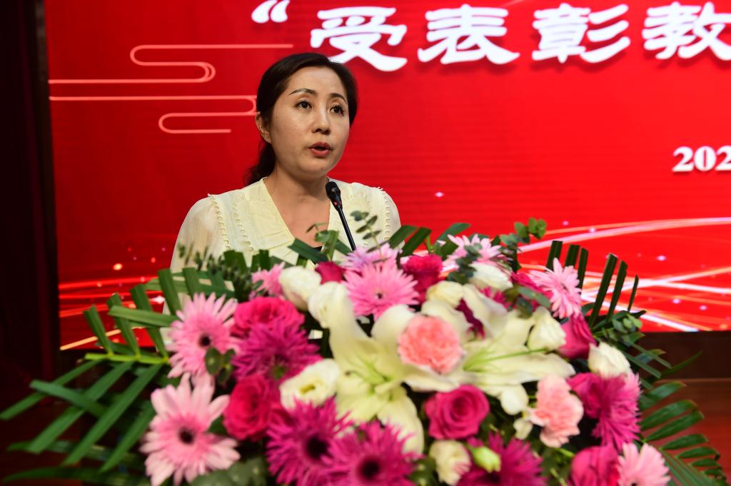 仲伟周在总结讲话中要求,全体教职工一是要提高思想认识,不忘初心使命,全心全意做学生锤炼品格、学习知识、奉献祖国的引路人;二是要涵养高尚师德,潜心修身治学,做到以德立身、以德立学、以德施教、以德育德;三是要强化责任担当,专注干事创业,进一步增强大局意识和责任意识,把握职业教育大趋势,学习典型、对标先进,厘清思路、守正创新,倾情倾心倾力、抓紧抓实抓好教育教学,提升专业能力。他希望,受表彰的同志珍惜荣誉、谦虚谨慎、再接再厉,在工作中积极发挥模范带头作用;全体教职工以受表彰的同志为榜样,立足本职、敬业爱岗、扎实工作,全力推动学校“双高”、本科、滨河校区三大重点建设高质量开展。