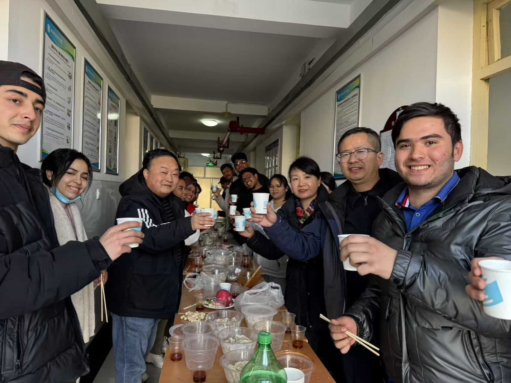 在国际学生宿舍,仲伟周与留学生深入细致交谈,详细询问了留学生的寒假学习、生活适应情况和寒假计划,叮嘱他们合理安排寒假生活,度过平安祥和的中国年,勉励留学生在校努力学习,为促进中外人文交流、推动民间友好贡献青春力量,为增进中外友谊和交流合作做贡献。张朝晖与留校国际学生、摩洛哥外教围坐一起,在欢乐融洽的氛围中品尝中国饺子,感受浓浓的年味儿,共同迎接新春佳节。