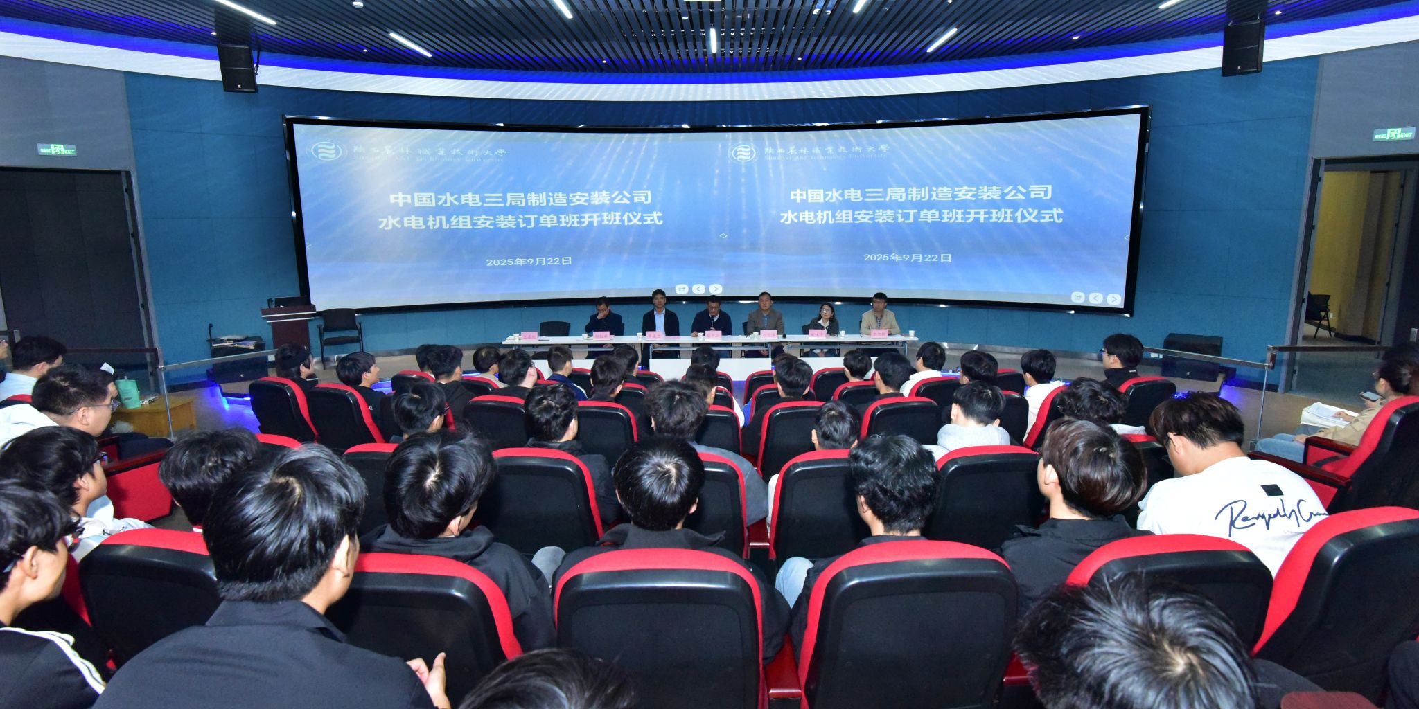 中国水电三局制造安装公司人力资源部主任安桂珍、招聘主管王嘉欣,水利工程学院负责人、教师代表及40名订单班学生参加开班仪式。