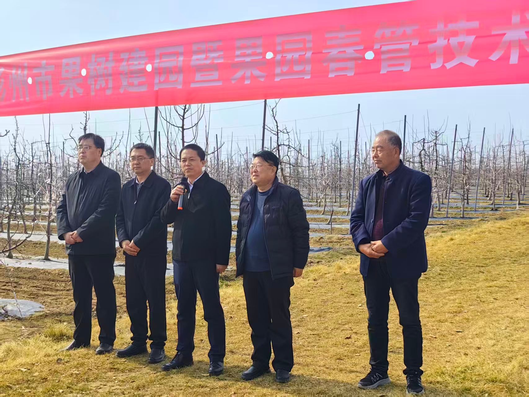 3月2日至4日,由我校生物工程学院马文哲教授、尚晓峰副教授等一行6人组成的专家服务团,赴彬州市开展春季果园管理技术指导与服务,并联合彬州市果业服务中心召开新苗建园暨果园春季管理技术现场培训会。彬州市副市长赵亚鹏,市果业服务中心主任杨永利,各镇(街道办)分管负责同志、部分村党支部书记、涉农企业及合作社负责人、果业系统全体技术人员及果树种植大户等参加培训。