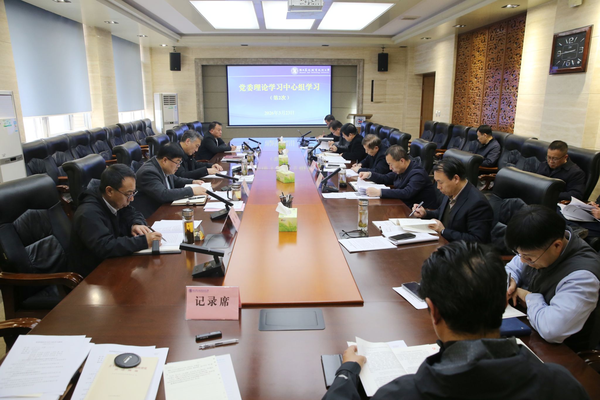 会议集体学习了习近平总书记关于在全党开展树立和践行正确政绩观学习教育的重要指示、《习近平关于树立和践行正确政绩观论述摘编》第一和第二专题、《中共中央 国务院关于锚定农业农村现代化 扎实推进乡村全面振兴的意见》(2026年中央一号文件)、中共中央办公厅《关于在全党开展树立和践行正确政绩观学习教育的通知》、2026年政府工作报告、《教育部关于深化职业教育教学关键要素改革的意见》、赵一德同志在省委农村工作会议上的讲话,观看了陕西省教育厅面向本科高校发布的《人工智能导论》课程视频。与会人员结合学校实际,围绕学习内容进行了发言。