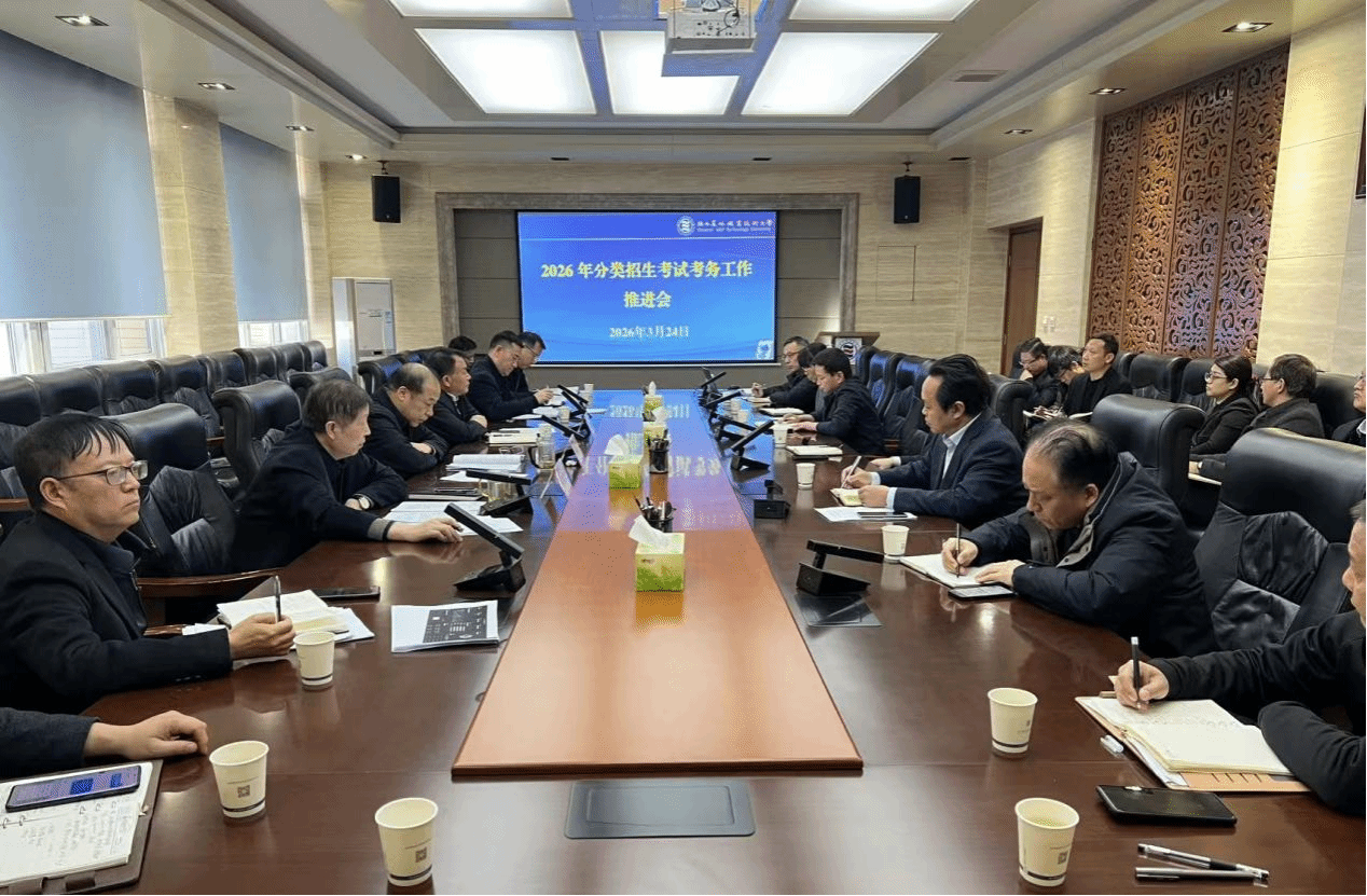 3月24日下午,学校召开2026年分类招生考试工作推进会。校长仲伟周、党委副书记王勇胜、副校长祝战斌出席会议并讲话。党委(校长)办公室、党委宣传部、纪委监督检查室、团委、教务处、招生就业处、学生处、后勤保障处、保卫处、信息化管理处、财务处、各学院(部)相关负责人等参加会议。