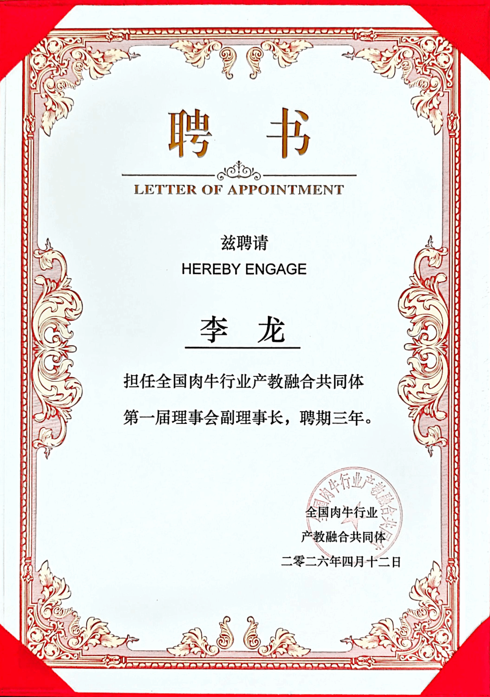 动物工程学院负责人李龙当选全国肉牛行业产教融合共同体副理事长