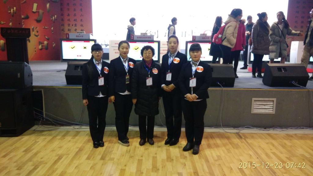 20154月起,陕西省语委、省教育厅、语文出版社在全省大中专学校组织开展了“中国梦•爱国情•成才志”规范汉字书写教育活动。经过第一阶段“语文知识大赛”校级初赛,组委会共收到32所学校寄来答卷2.8万份。经专家阅卷统计并参考各校活动开展情况、在校生参与率、答题正确率及新闻宣传情况,确定包括我校在内的12所高校和4所中专学校晋级省级竞赛。1222-23日,由我院文理分院戴夏燕老师担任指导教师、我院2014级生物工程分院的张琳琳、赵梦倩、樊敏飞以及经贸分院的程瑶等4位同学组成的代表队参加了省级决赛。