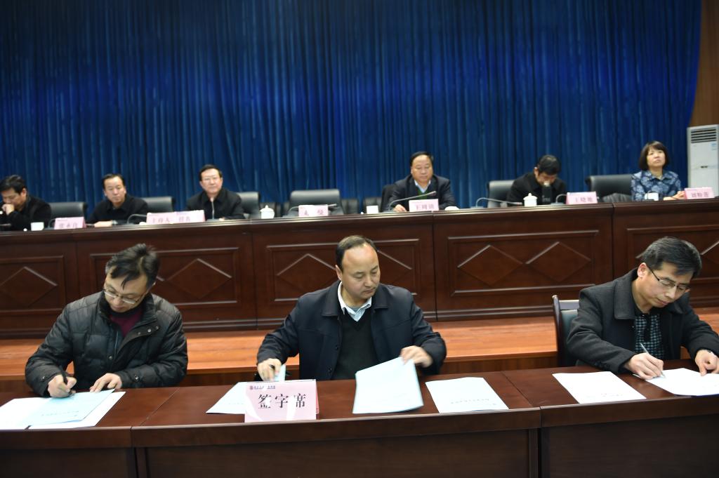 副院长王晓地宣读了学院《关于2015年度考核结果的通报》。大会颁发了2015年度工作目标考核优秀单位奖,表彰了2015年度考核优秀个人。学院领导与各分院(部)、处室(中心)负责人代表签订了2016年度工作目标任务书、稳定安全责任书、党风廉政建设责任书。大会由党委副书记任得元主持。