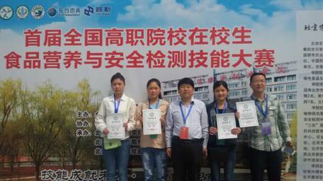 大赛分为营养素检测、微生物检测、农药残留检测三个项目,经过现场操作、第三方检测、上机测量、数据处理等四个环节的激烈角逐,我院生物工程分院参赛的3名选手全部获奖,其中刘莹同学在营养素检测中获金奖,刘嘉璐、吕妮同学分别在微生物检测、农药残留检测中获铜奖。我院教师张鹏被评为优秀指导教师。