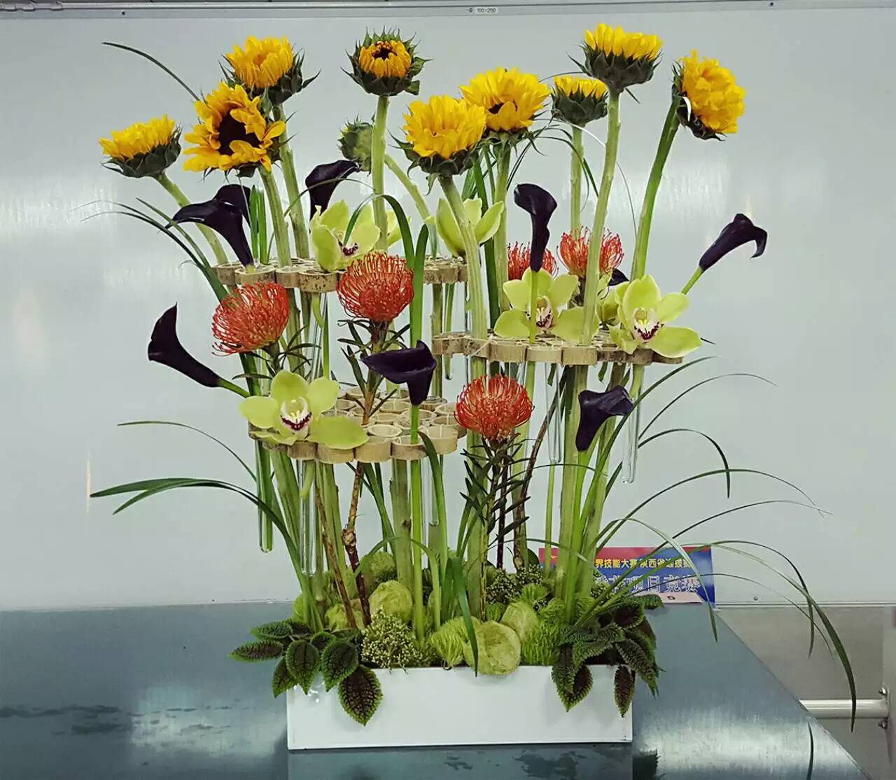 经过两天紧张激烈角逐,西安市弗斯特花艺馆职工王朝霞同志获得金奖、指导教师是西安青年花艺师沈修勇,我院生物工程分院现代园艺技术14043班李雄义同学获得银奖、指导教师田雪慧,我院生态环境工程分院园林工程14047班王苗苗同学获得铜奖、指导教师方大凤,西安文理学院张玉姣同学等获得优秀奖,指导教师马兰。我院生态环境工程分院获得优秀组织奖。
