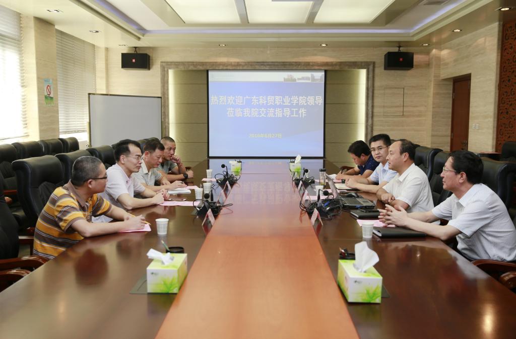 627日,广东科贸职业学院党委书记耿静超、党委副书记纪委书记李建辉一行4人来我院访问交流。学院党委书记赵曼、副书记任得元在醒钟楼第一会议室热情接待了客人并举行了座谈。党政办公室、组织宣传部等相关部门负责人参加了座谈会。