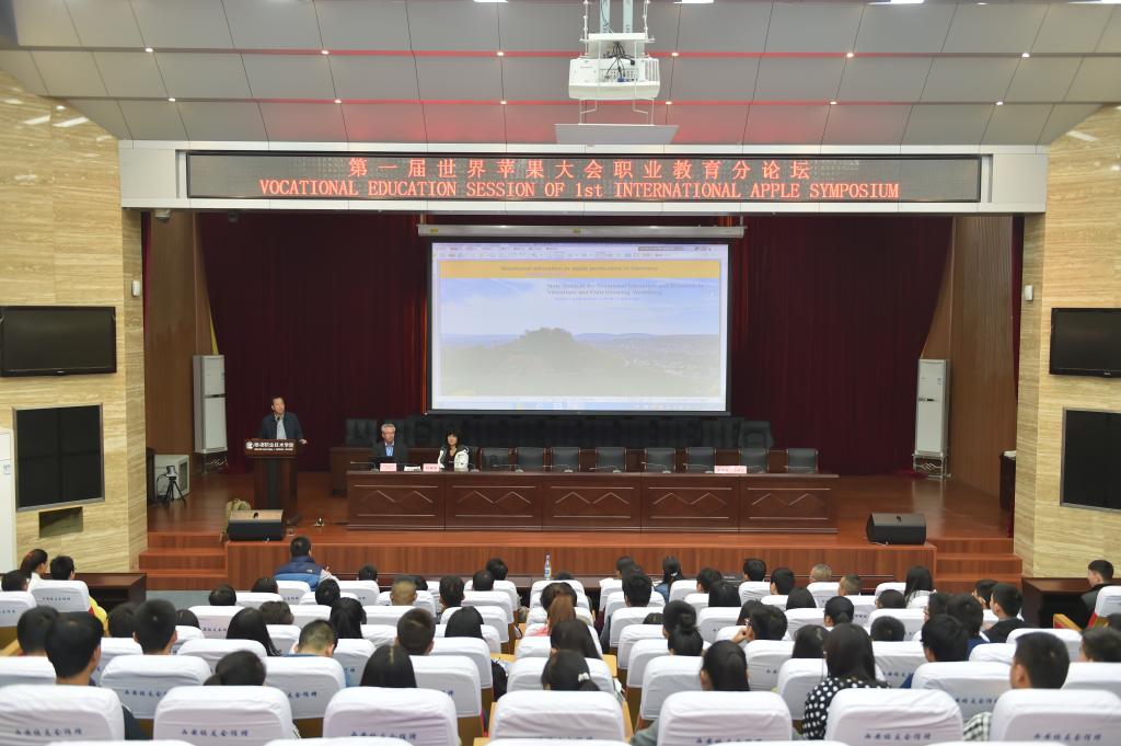 由国际园艺学会、中国园艺学会和中国工程院主办,西北农林科技大学、陕西省农业厅(果业管理局)等联合承办,北京林果业生态环境功能提升协同创新中心、中国农业大学、山东农业大学和杨凌职业技术学院等协办的首届世界苹果大会于10月10-16日在杨凌召开。本次会议从种质资源与育种、果园环境与栽培管理、分子生物学与生物技术、植物保护与生态防治、果园装备、采后加工,市场贸易、营养健康、苹果生产与职业教育等多个方面深入探讨苹果产业面临的科学问题。其中苹果生产与职业教育分论坛在我院举行。