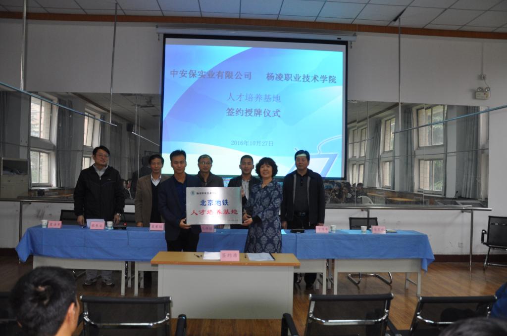 10月27日,中安保实业有限公司人才培养基地签约授牌仪式在学院大学生活动中心举行。纪委书记刘粉莲,中安保实业有限公司西北区人事总经理马伟栋经理、人事经理丁月平,学院招生就业处、交通与测绘工程分院负责人,师生代表百余人参加了签约授牌仪式。