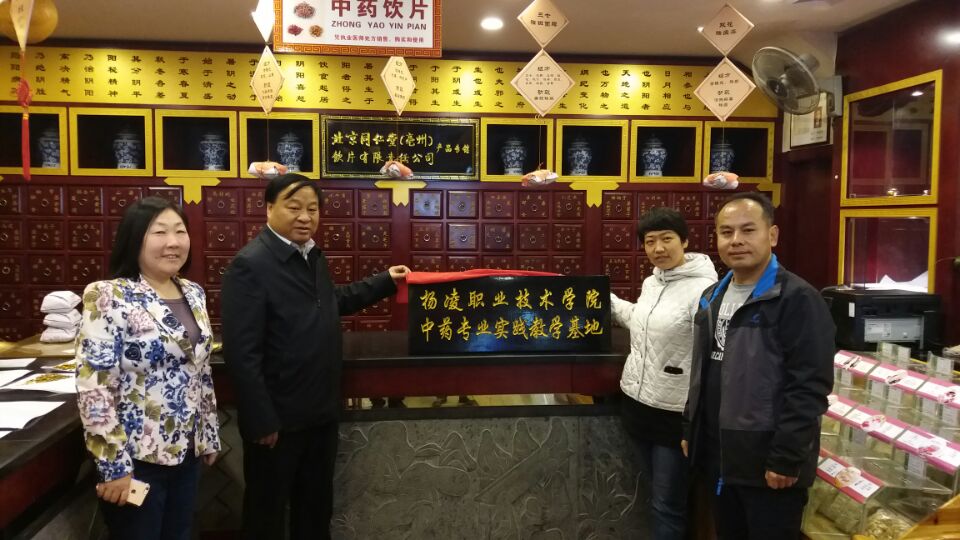 在北京同仁堂(西安分公司),王院长为该公司“杨凌职业技术学院中药专业实践教学基地”进行揭牌,并与我院来该企业顶岗实习的学生进行了认真交谈,了解实习情况。北京同仁堂(西安分公司)和我院药物与化工分院有着多年的校企合作历史,该公司也是我院中药专业的实践教学基地,承担着我院学生的综合实习、顶岗实习、中药传统技能大赛等任务,