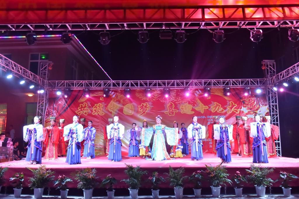 晚会在一支青春洋溢的《尽显青春》啦啦操中拉开序幕,节目更是精彩不断,有古典舞、街舞,也有印度舞;有演唱,也有诗歌朗诵。晚会间隙还开展了党建、扶贫、物业知识问答。表演者既有我院师生,也有大寨街道办的居民。整台晚会现场欢歌笑语,掌声不断,吸引了300多名群众到场观看,大家一起载歌载舞,喜迎十九大的召开。晚会充分展示了我院素质教育的成果, 展示了职业教育的特色与魅力。