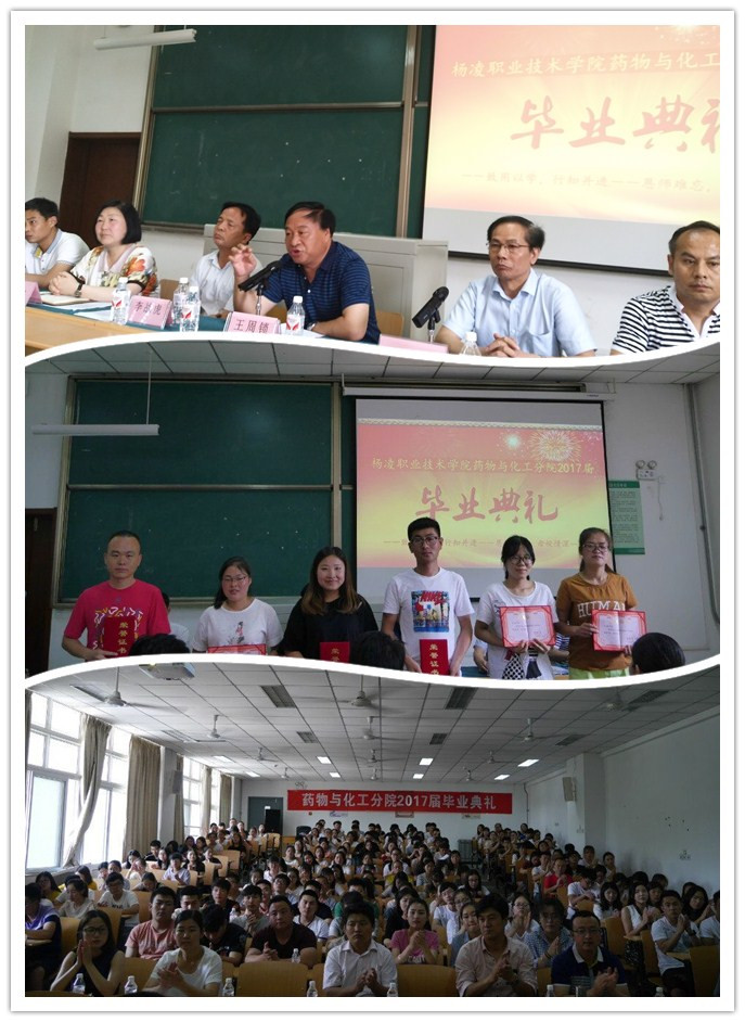 616日,药物与化工分院在乐农楼举行了2017届毕业典礼,学院院长王周锁出席,学生处处长、分院党总支书记、院长、教师代表以及全体毕业生参加。