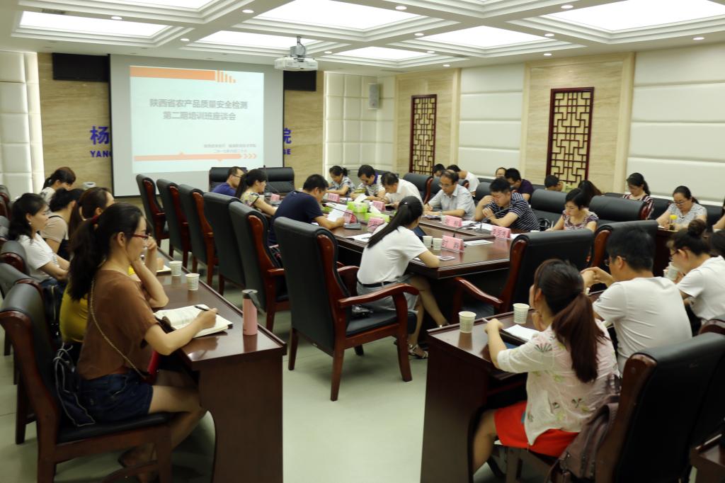 6月26日下午,陕西省农产品质量安全检测第二期培训班座谈会在我院醒钟楼举行。陕西省农业厅总经济师陈文、该局有关负责同志、我院生物工程分院负责人、教师以及38名参训学员参加座谈会。