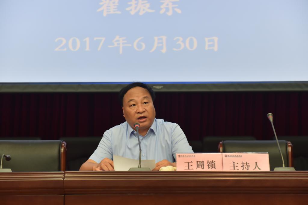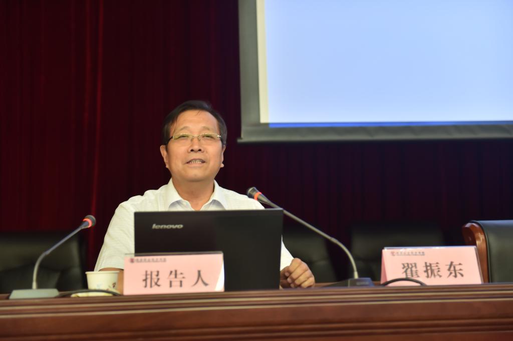 6月30日,我院邀请西安翻译学院董事会董事、常务副校长翟振东教授在思辩堂作了题为“把握高等教育改革发展趋势,做高素质高校教师”的专题报告。党委书记赵曼、院长王周锁、党委副书记任得元、副院长张永良及学院300多名教师和管理人员到场听取了报告。报告会由院长王周锁主持。