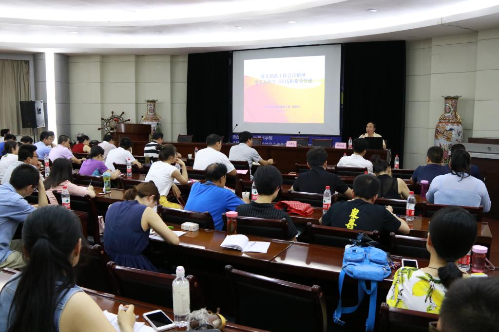 7月23日,省高教工委学工部部长田民正来我院,为全体学生工作人员作题为《落实思政工作会议精神,增强学工队伍职业荣誉感》的报告。田民正传达了省高校思想政治工作会议精神,从做好学生思政工作的政治要求、学生思政工作以学生为主体的要求、学生思政工作改革创新的要求三个方面,深入学习习近平总书记关于高校思想政治工作重要讲话。他结合高校学生思政工作的典型案例,要求辅导员要有政治意识、大局意识,在工作中要围绕学生、关照学生、服务学生,为学生点亮理想的灯,照亮前行的路;要沿用好办法、改进老办法、探索新办法,因事而化、因时而进、因势而新,把握学生思想动态和学生教育的规律性,增强时代性、体现时代新要求,把思政工作落实到学生事务的具体过程,培养德才兼备、全面发展的人才。