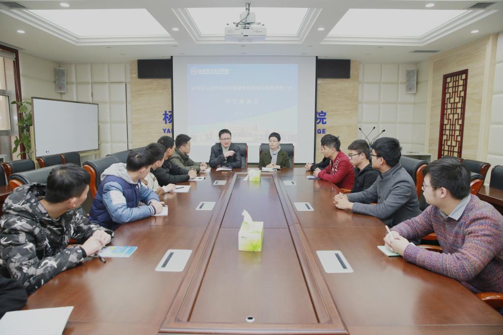 随后,刘粉莲从机构设置、人员配备、经费和场地保障,以及就业创业课程设置、平台搭建、活动组织等方面,向考察组汇报了我院大学生就业创业工作的基本情况和主要做法。