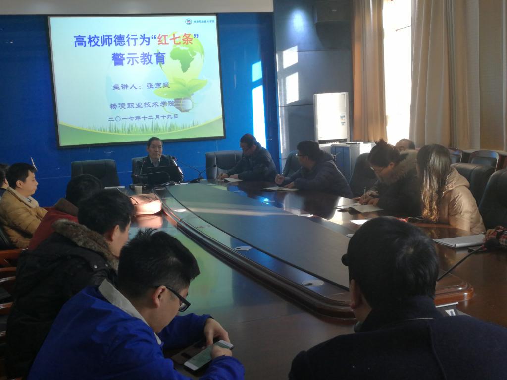 会上,宣讲人集中通报了全国几起违反师德行为的典型案例,希望全体教职工引以为戒,要求大家要严格按照师德行为“红七条”规范自己的言行,努力建设清正廉洁的师德师风,真正做到学高为师、身正为范,为培养社会主义合格建设者和可靠接班人和把我院建成国内一流高职名校而不懈努力。
