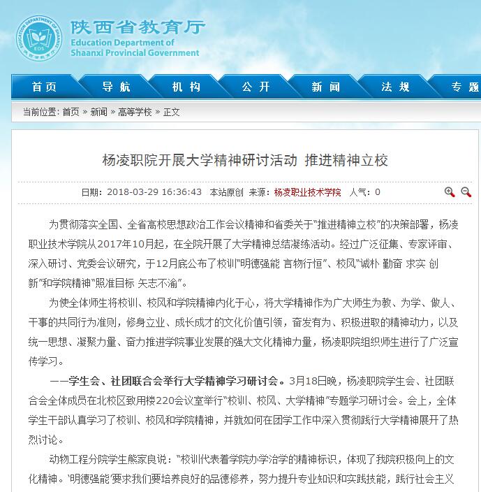 【陕西省教育厅】杨凌职院开展大学精神研讨活动 推进精神立校