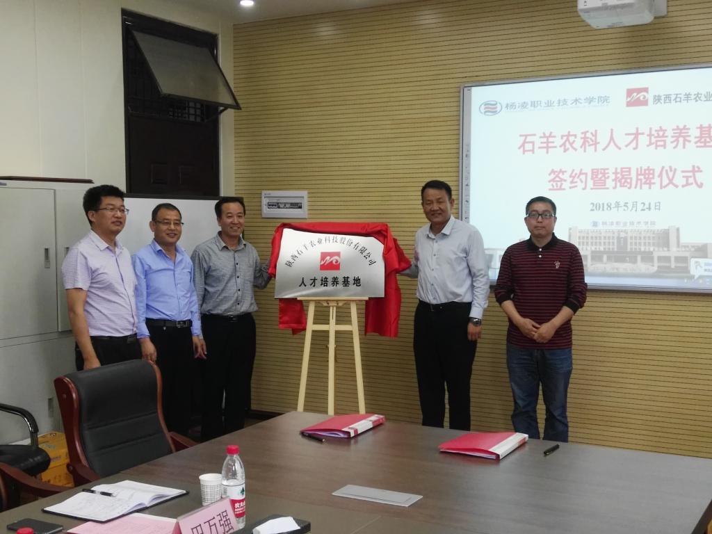 会上,张永良与乔冰涛共同为基地揭牌;动物工程分院负责人代表学院与陕西石羊农业科技股份有限公司签署了校企深度合作协议。
