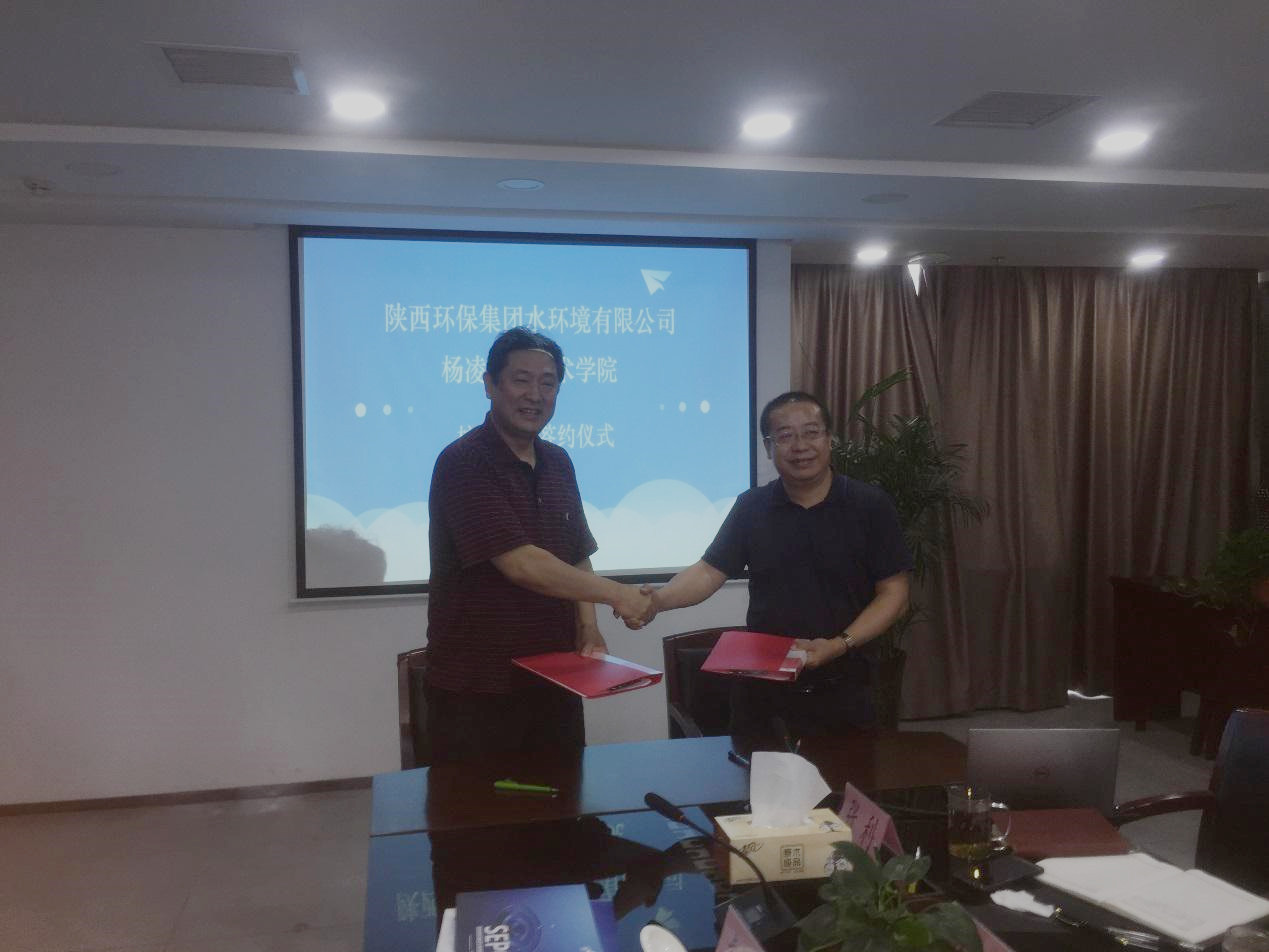 签约仪式,齐山就陕西环保集团的基本情况和公司目前开展的主要业务作了详细的介绍。王晓地简要介绍了我院的办学规模、专业设置、科研培训等基本情况,刘粉莲就我院的招生就业、订单培养情况作了说明。随后,双方在教师实践锻炼、科学研究、教材建设、人才培养方案制定、学生顶岗实习,企业员工专业培训、学历提升以及共同举办西北水环境青年学者论坛等方面展开了深入探讨,双方约定建档立卡贫困家庭学生优先进入订单班学习培养。