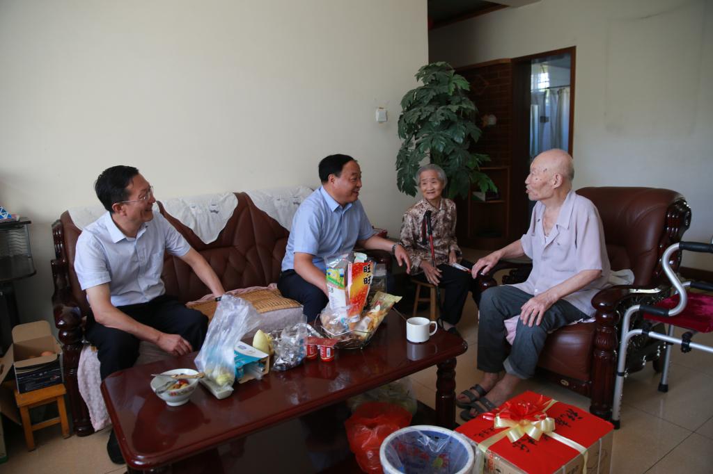 随后,王周锁一行看望慰问了我院离退休教师张四维、胡国俊。在张四维家中,王周锁为他送上了一束鲜花和慰问品,祝他教师节快乐,并希望张四维身体健康,能够继续发挥余热,关心学院发展。在胡国俊家中,王周锁向胡国俊送去了节日的祝福与问候,详细询问了胡国俊的身体以及生活情况,对胡国俊长期以来为学院做出的贡献表示感谢,并嘱咐他多保重身体,继续发挥余热,为学院发展献计献策。