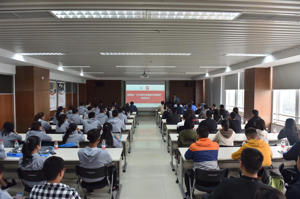 10月12日,我院与陕西石羊农业科技股份有限公司联合创办的“现代养猪技术创新班”开班典礼在石羊集团举行,院长王周锁,石羊集团总裁常青山,石羊农科总经理乔冰涛,动物工程分院领导、教师代表,现代养猪技术创新班全部学生和2018级新生代表80余人参加了开班典礼。