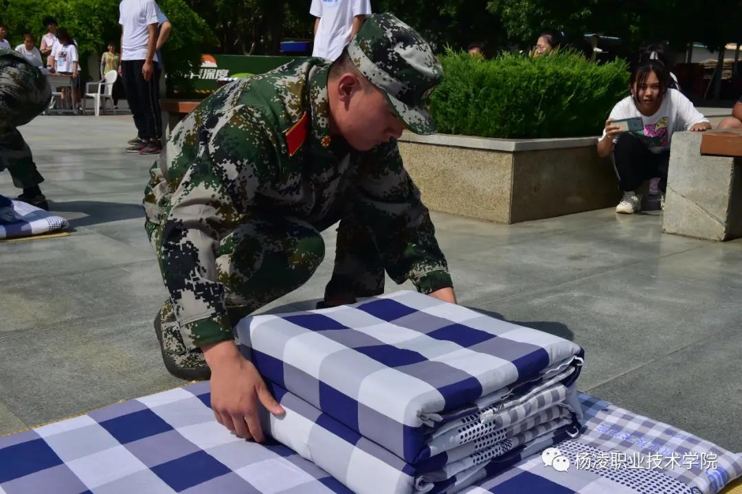 ——开展“叠军被”大赛。进一步巩固国防教育成果,锻炼学生整理内务能力,在棱角分明、四四方方、平整对齐、饱满无皱褶的一个个“豆腐块”中,展示出了杨凌职院大学生的别样风采,促进了规则意识和良好文明习惯的养成。
